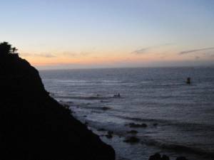 Unfortunately, due to poor planning on our part, we arrived just after sunset and the moon didn’t crest the first hill until we were almost back at the place that we parked our car. So we did most of the hike in pitch black with no flashlights…which had the potential to be dangerous (lots of steps to trip on and cliffs to walk off of.) But we survived without major incident and even made the trip down to the cove rock beach, which was very cool (even in the dark) and got a good look at the stars (and thanks to the Google Sky app on Molly’s Droid, IDed a bunch of constellations.)