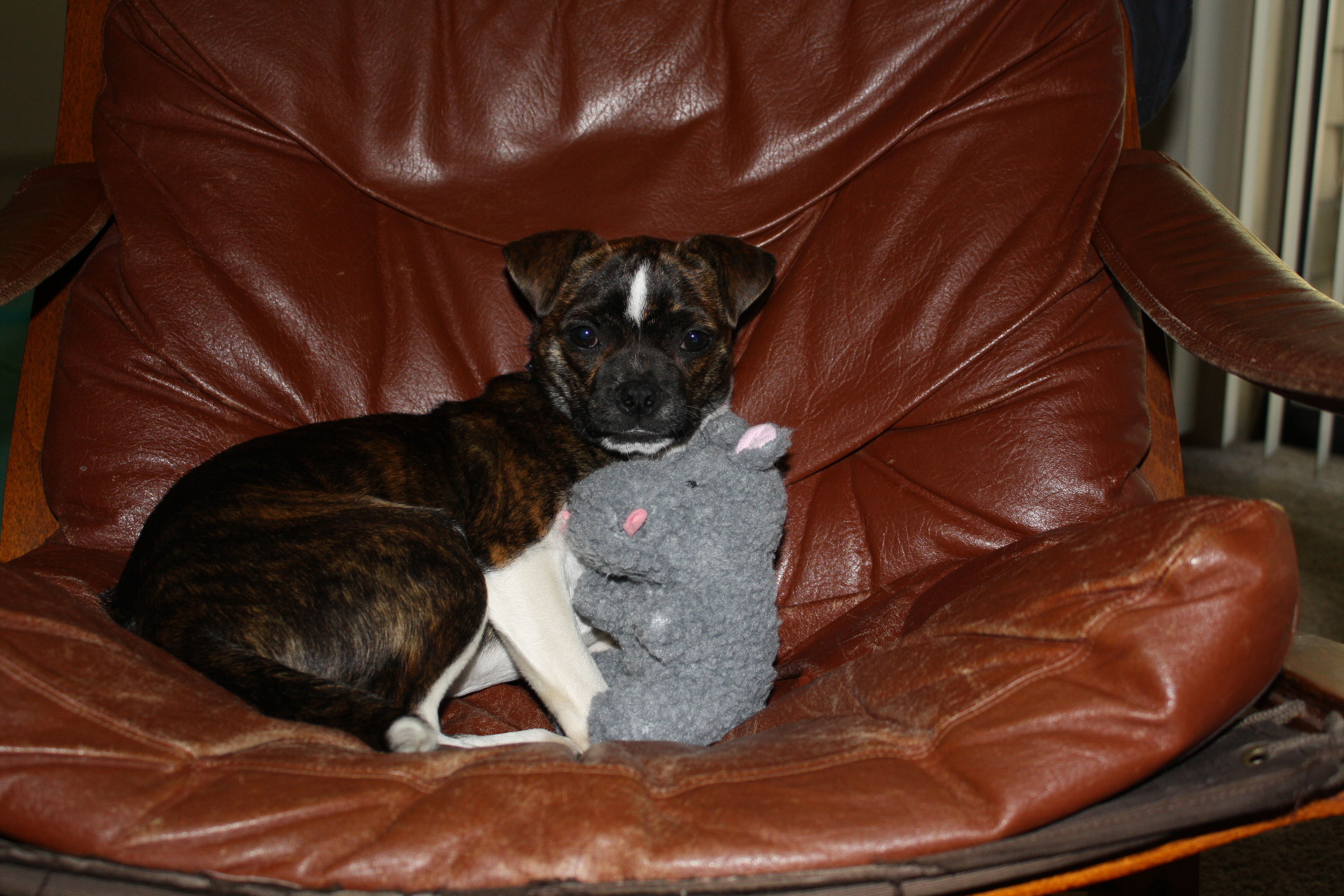 We got Spike from a farm in Eastern Kentucky that serves as a rescue for dogs from high-kill shelters. The father of the family that runs the farm (who came out wearing overalls with no t-shirt and a John Deer trucker hat), told us he is a little less than a year old, most likely full grown, probably a Boston Terrier mix, and that he “sure is sumpin’ else”. (He came with the name.) Aside from the fact that he’s taken 2 dumps in Paul’s closet (even though they said he was housebroken…fortunately he is small and so are his turds), he is pretty cool. And he (and his hippo) would like to meet you.