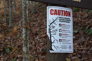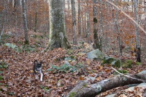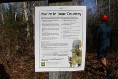 At this point, I was so not feeling this hike. While Paul was trying to convince me that bears don’t have babies until the spring, so the odds of one attacking us were slim, and I was going over the sign reviewing what we were supposed to do should we come across an aggressive bear (face the bear, but do not look him directly in the eyes, never turn your back) and how to avoid falling tree-tops, we heard a gunshot. It took some serious coaxing and a promise that we would keep Spike on the leash for Paul to get me back out of the car and on the trail.