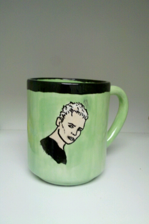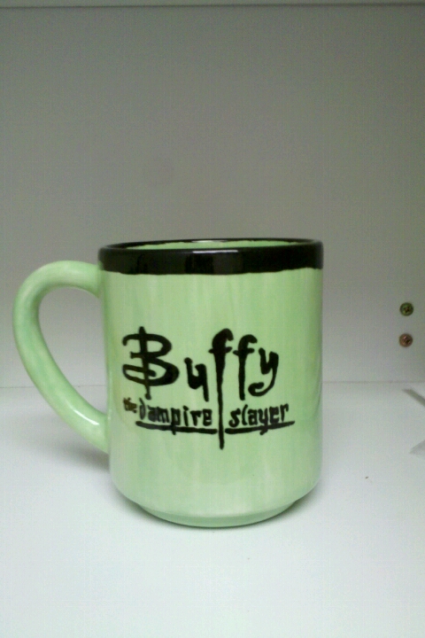 I got this mug at Starbucks a few weeks ago after a colleague totally freaked out on me for using her Buffy the Vampire Slayer mug that was sitting in the kitchen cupboard at work. True story.