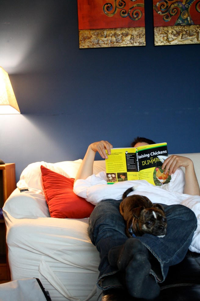 2. Me: Have you read Meagan’s blog today? They’re going to raise chickens.
