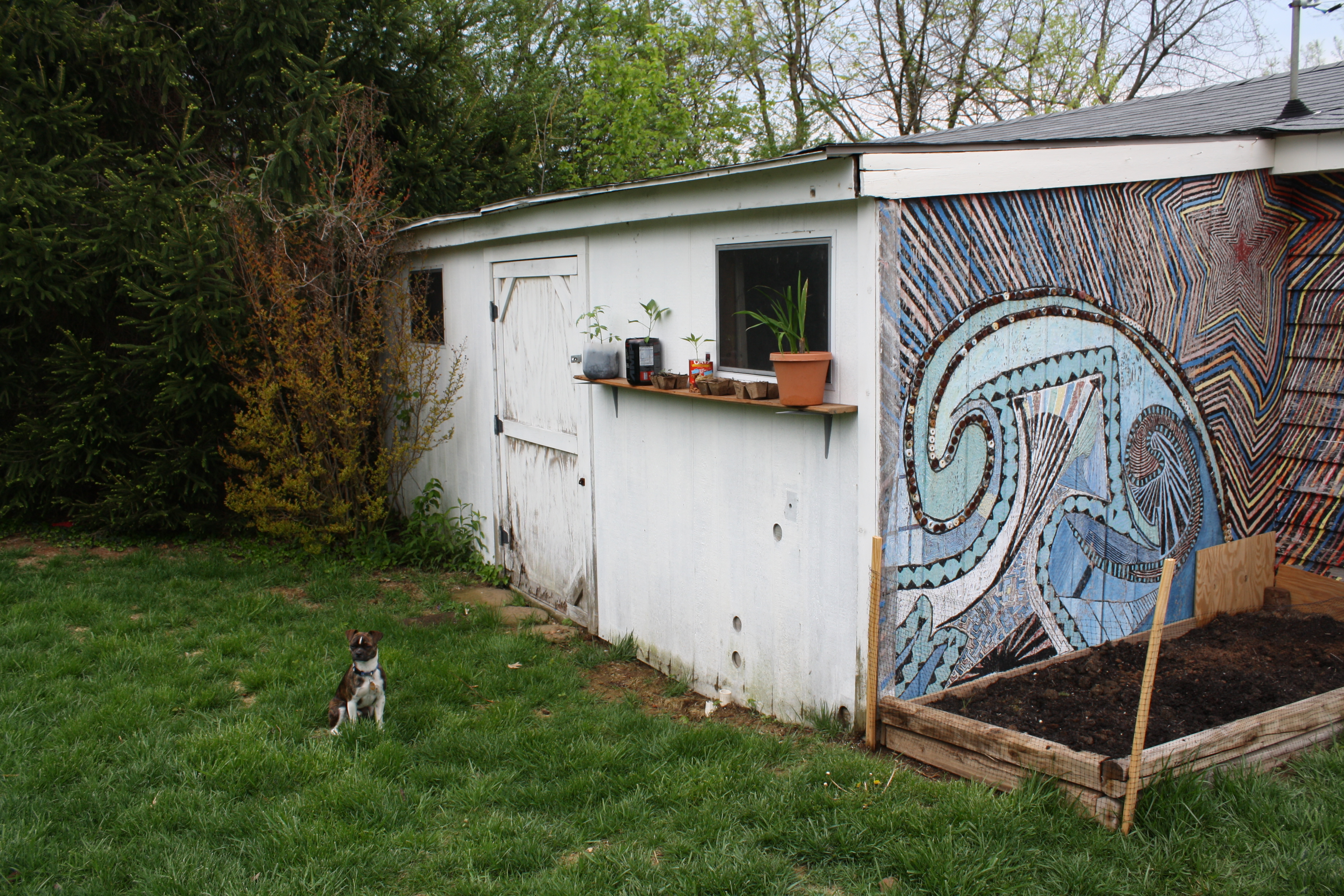 I couldn’t even write about it when it happened like 3 weeks ago because I thought the blog would be getting too redundant, but after our last replant (after the greenhouse blew over for the second time), we had put our only surviving plants on the picnic table, and I walked outside to find said survivors spewed across the yard and Spike chomping on the biodegradable pots. I really lost it and almost killed him, but Paul and I finally figured out a solution (5 attempts too late.)