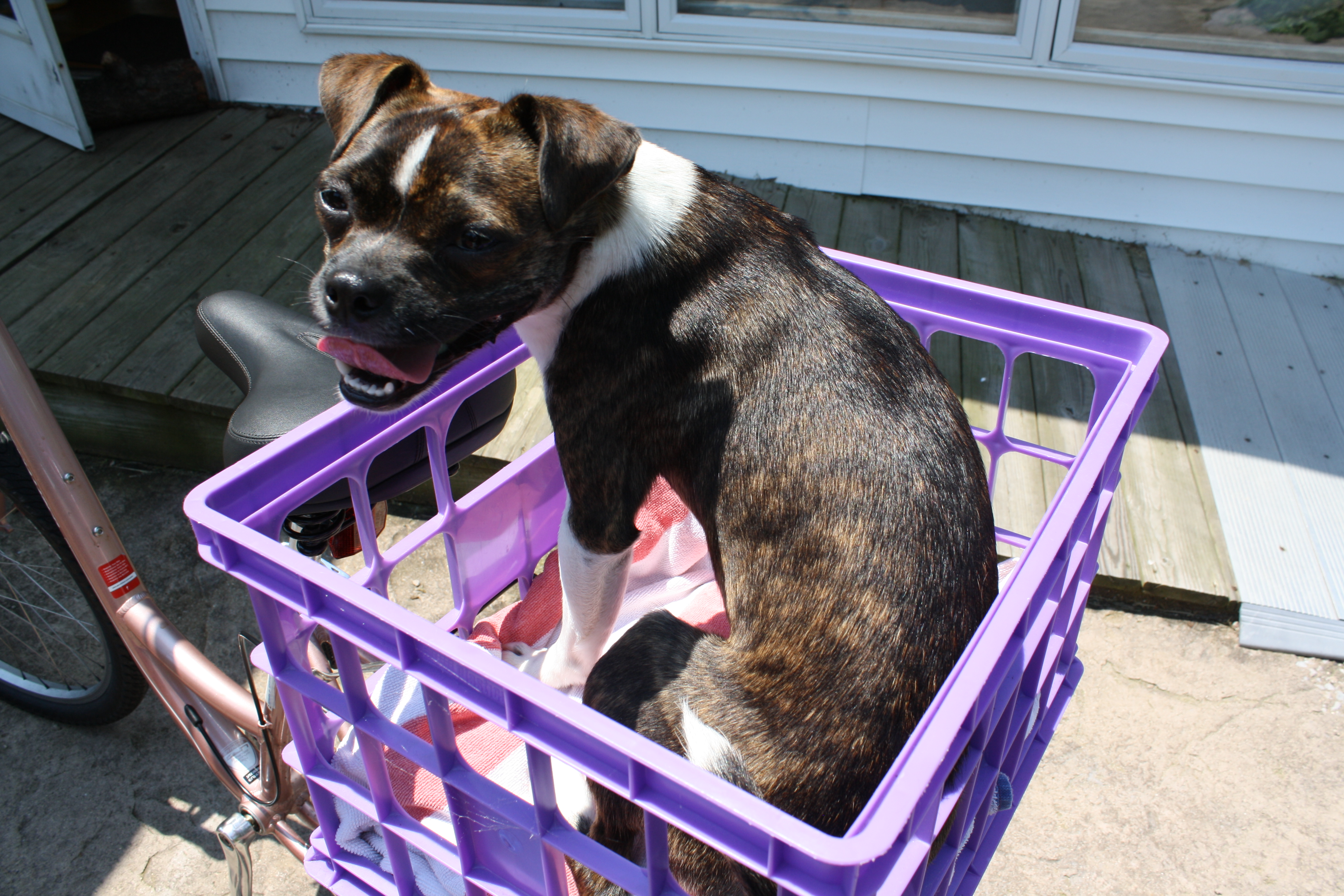TIME OUT June 21, 2011 ~ meh It is time for one of these. A quick break from trip posts. For this: Paul has this dream of putting Spike in a bag or basket and riding around town with him. Training has been going well so far. Share this: Click to share on Facebook (Opens in new window) Facebook Click to share on X (Opens in new window) X Like Loading... Related Published by meh View all posts by meh
