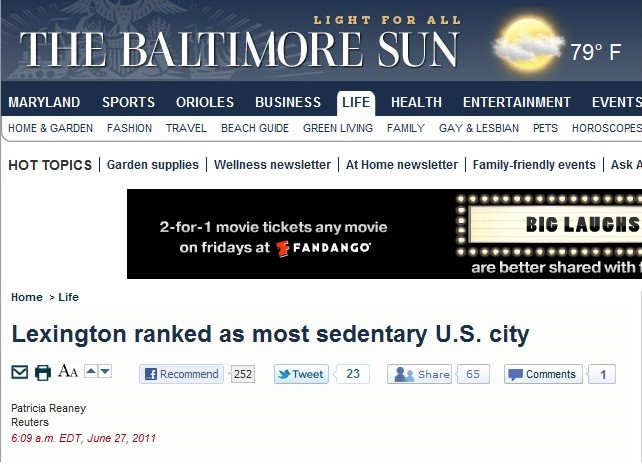 If you’re keeping score, Lexington is now #1 in: biggest carbon footprint, sexual frustration, allergies and laziness. So if you’re into the whole coal-burning, coach potato, sneezy and celibate lifestyle, come to Lexington and join the fun! Don’t knock it till you’ve tried it.