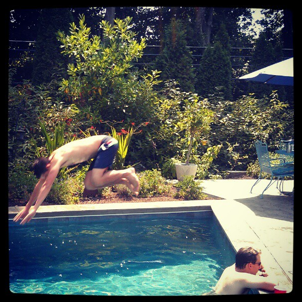 Because the temperature just kept going up and up, after the run we headed over my sister-in-law’s boyfriend’s mother’s pool (get that?) where we lounged around and his mom served us post-race spiked lemonade and snacks.  It was…amazing.