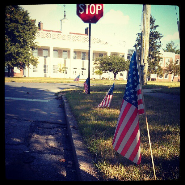 First off, they line the entire main street in town with these little tiny American flags.  I have no idea how long it took someone to do this.