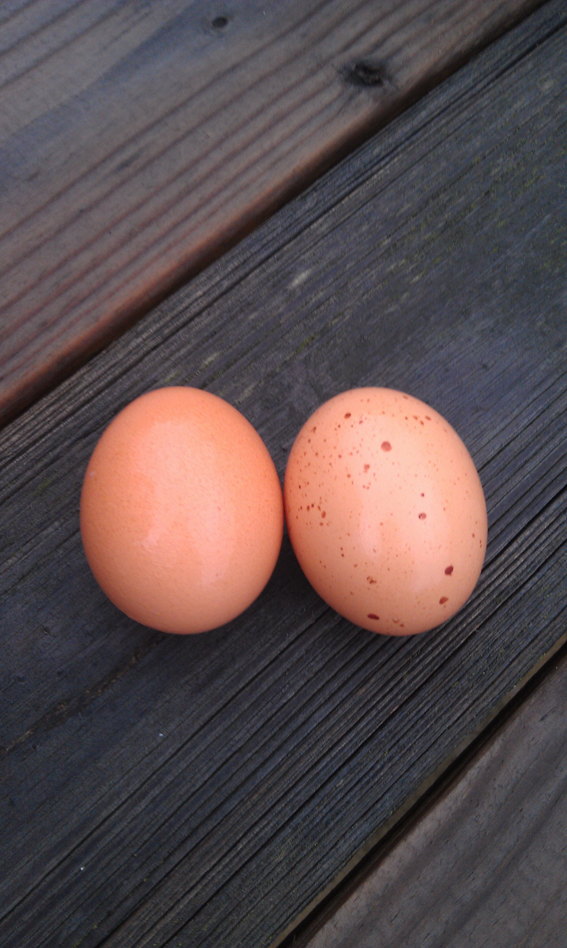 I thought that was weird and was wondering what might have caused the change. After some extensive research (Google) I came across this National Geographic article that suggests that the speckles on the shells of bird eggs may be caused by certain compounds known as protoporphyrins, which often shows up in eggs from birds that are calcium deficient to assist in strengthening the shells.