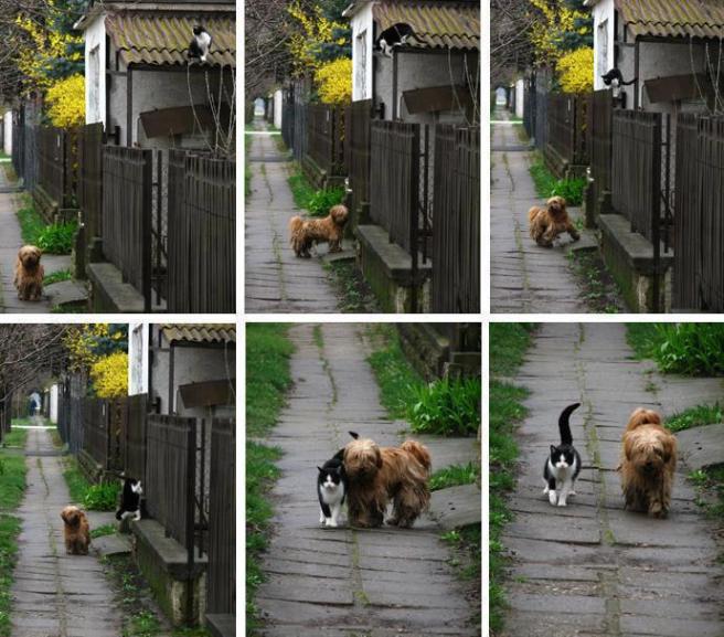 To wrap up this exciting, unintentionally animal-centric post, I’ll leave you with this series of pictures that went viral on FB last week. Apparently every day these two go for a walk together. I particularly like the pic in the upper righthand corner, he looks so excited that his buddy is coming down.