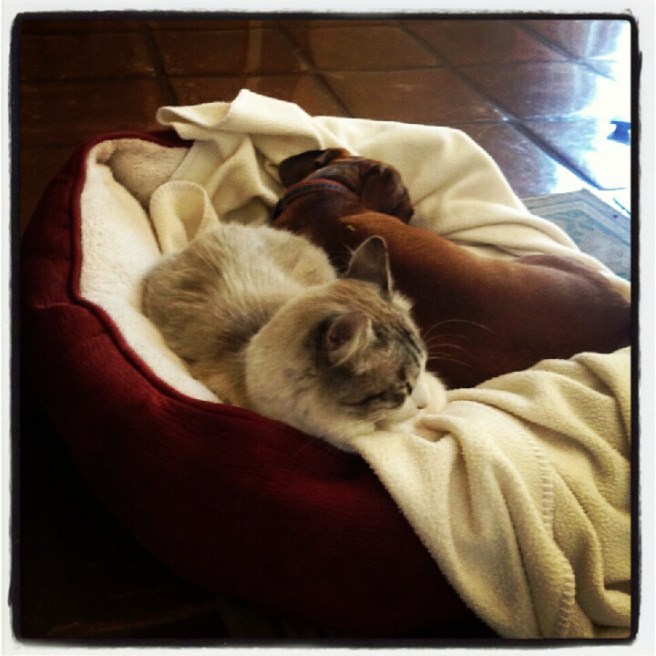 Reminds me of Barkley and my mom’s “feral” cat that she adopted from the humane society to hunt rats in the orchard.