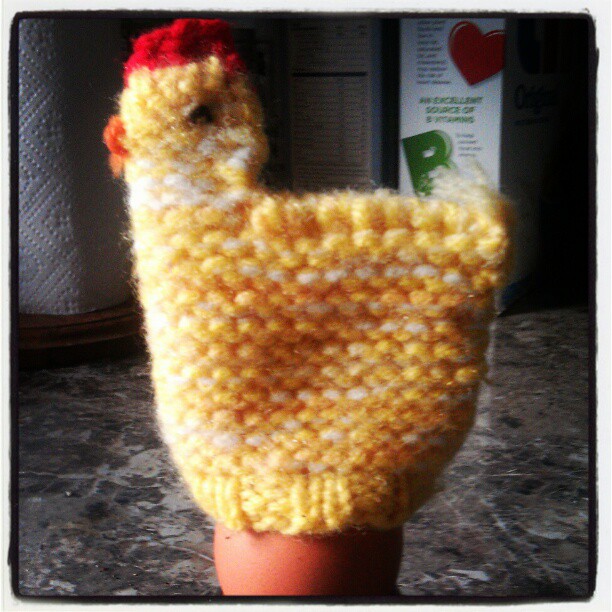 Fortunately, we have this hand-crocheted egg warmer shaped like a chicken (a wedding gift from Paul’s German aunt, she made them), boiled egg holders, and special spoons to scoop the eggs out of the shell. So at least we were properly equipped when his craving kicked in.