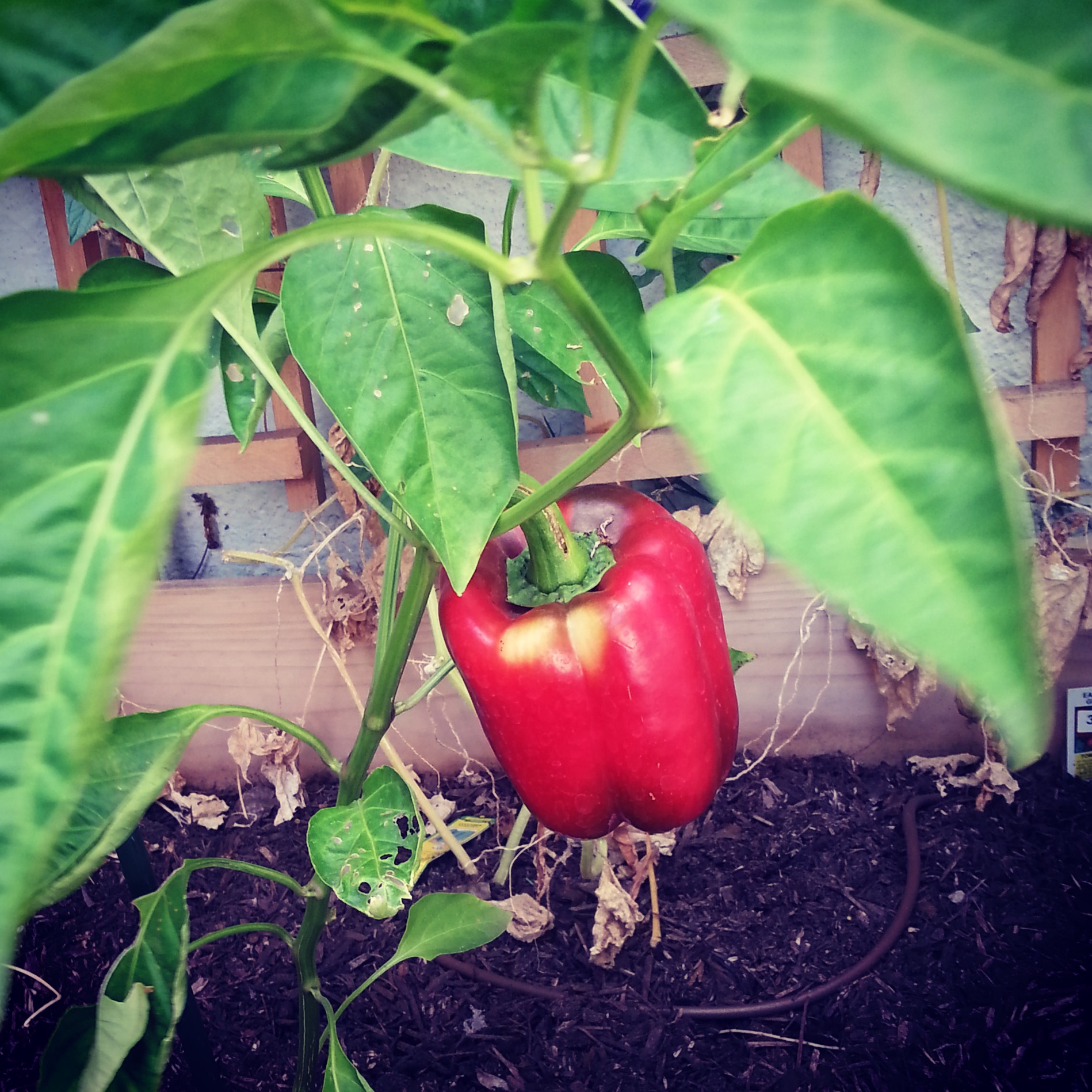 So in addition to no tomatoes, we also managed to shade or push out any other plants in the garden. All of our squashes have been eaten or rotted away before they were ripe. We got about three tomatoes, a handful of peppers, and one cucumber. Oh, but we did get a ton of basil.