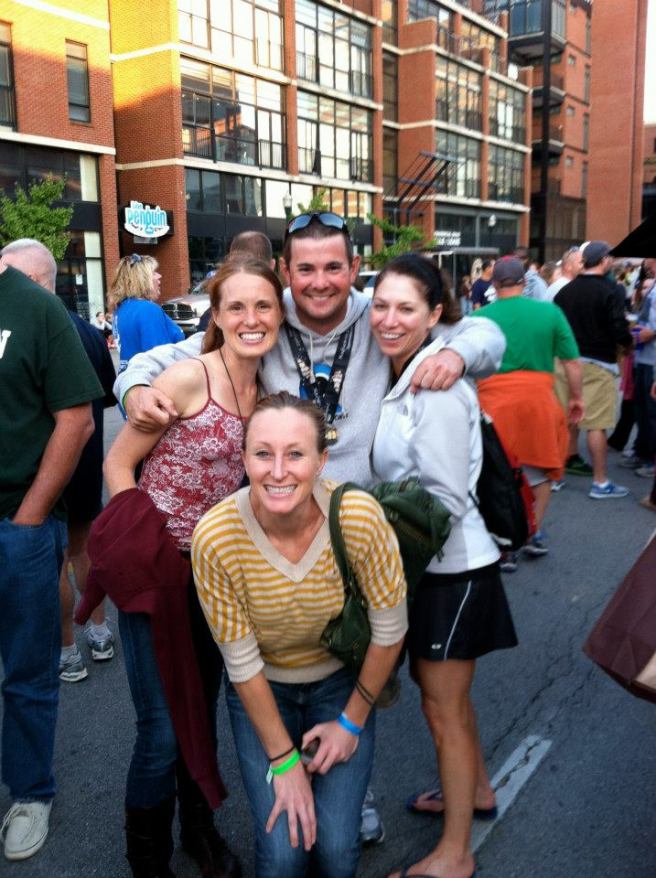 Well. Jen ran so fast that our team wasn’t even at the finish line yet. Apparently the announcer was like, “TEAM 507! HERE COMES YOUR RUNNERRRRrrrrr.” And she ran across the finish line. Alone.
