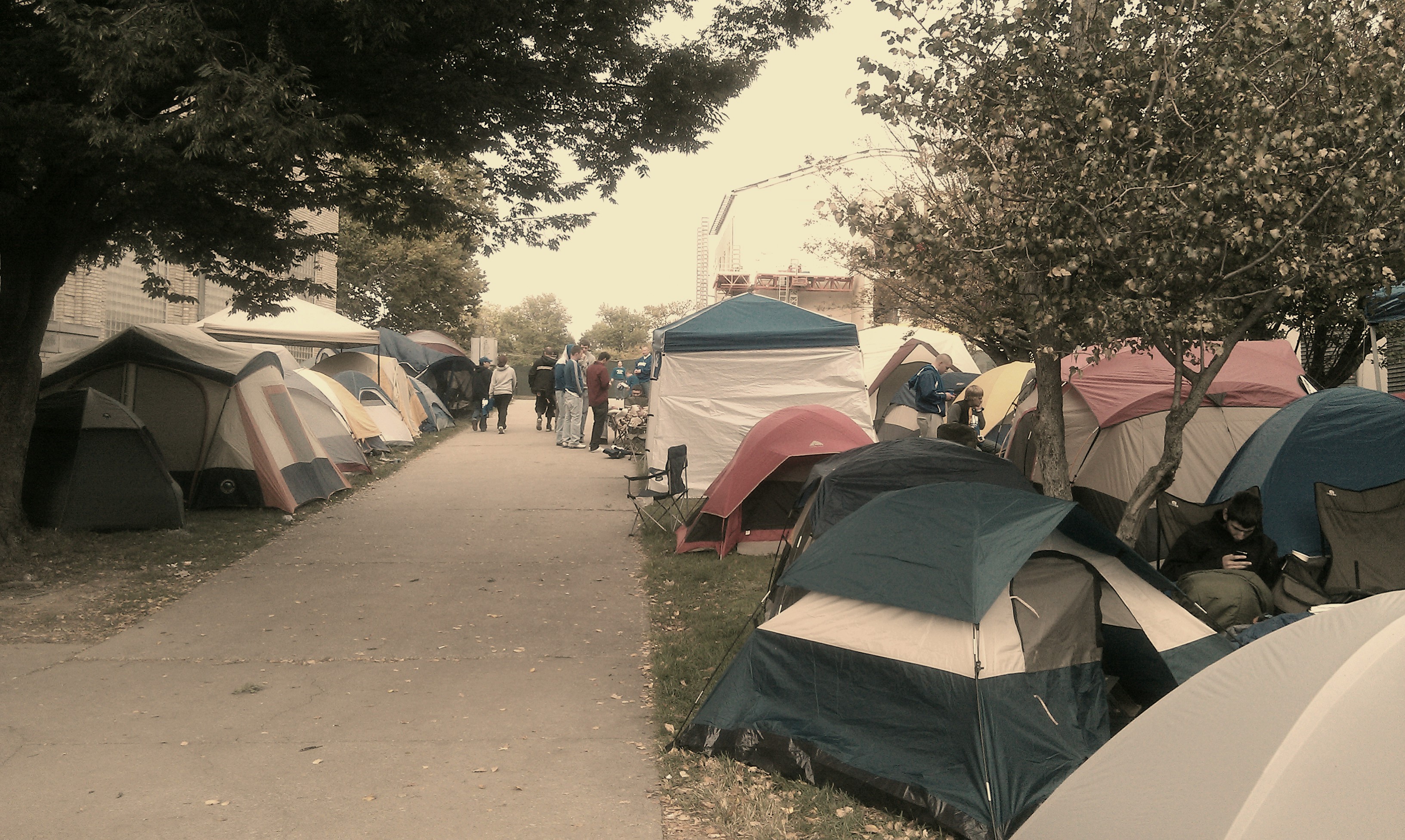Rupp Arena doesn’t allow people to camp out in front of it until 3 days before the event. So everyone camps out across the street for the first few days, so they can get a camping spot in front of Rupp as soon as they open it up for camping. This is all to get in line at 2am the day before for free event tickets.