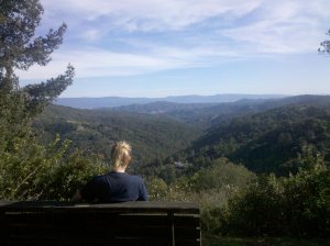 Secretly I was hoping for horse-drawn buggies and butter churns, but the reality was even better. Moss-covered rocks, little cottages…I was afraid a gnome was going to jump out in front of my car. So anyway, we finally got to the trailhead. Armed with raincoats we set off onto…totally sunny trails. We started out heading toward Alec Canyon trail. The first part of the hike was on wider fire roads up to a 35 foot fall called Triple Falls, which was cool, and the views of the valley were awesome.