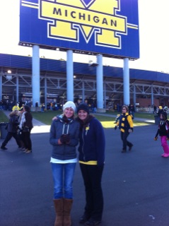 But enough about clothing. After pre-gaming at the Michigan Business School Party Bus, we (and 111,000 other people) headed into the stadium…the biggest stadium in the country. (I guess Michigan had the biggest, then Penn State built a bigger one, then Michigan rebutted and updated theirs to be the biggest again. Pouring millions into a sports arena even though you can already seat over 100,000 people just to be bigger than the next guy…how American can you get.) We sat in the student section and enjoyed some chili cheese fries, irish hot chocolate, and a lot of touchdowns. Some idiot showed up wearing an Ohio State hat, both he and the hat were thrown out of the stadium. The game went into triple overtime, Michigan won 67-65 (the score was higher than the basketball score for the two teams last year.)