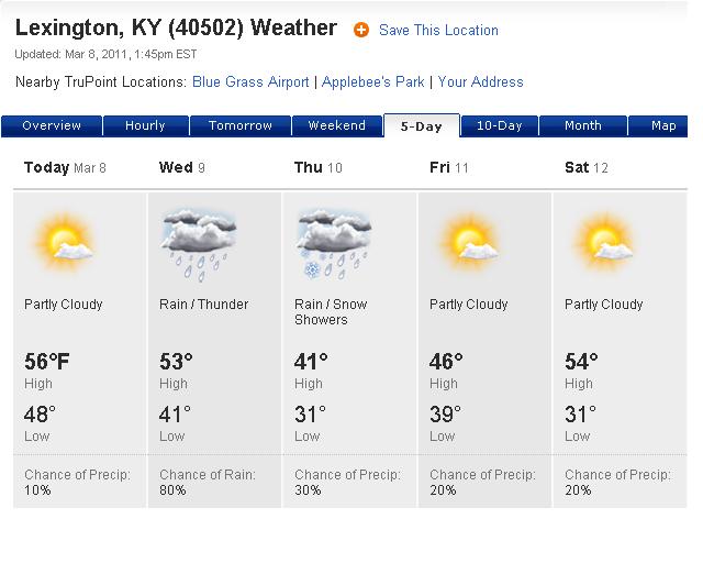 Cloudy with a chance of WTF March 8, 2011January 17, 2012 ~ meh ~ 1 Comment Weather forecast for the next 3 days: sunny, thunderstorms, snow. How. And Why.