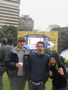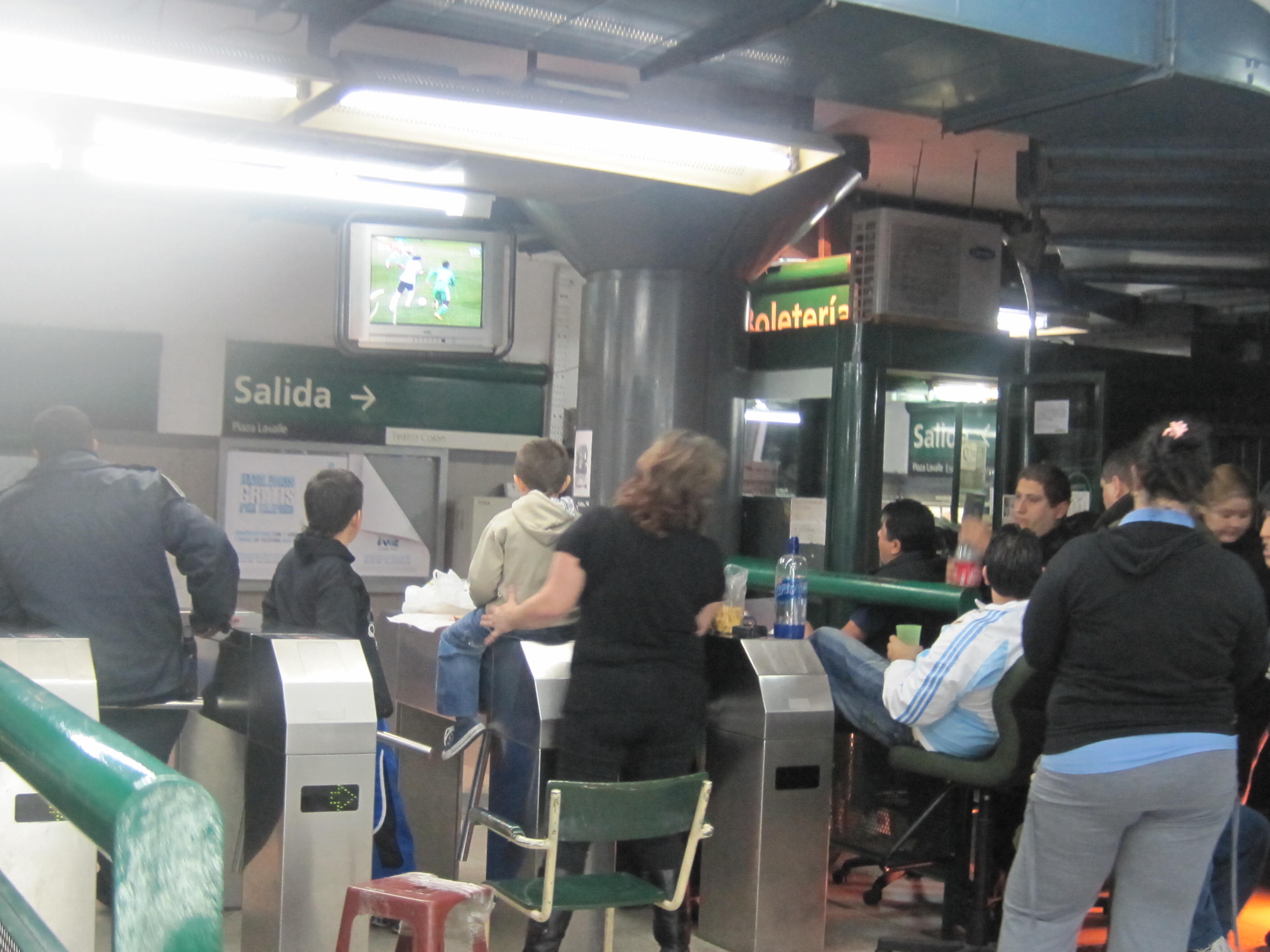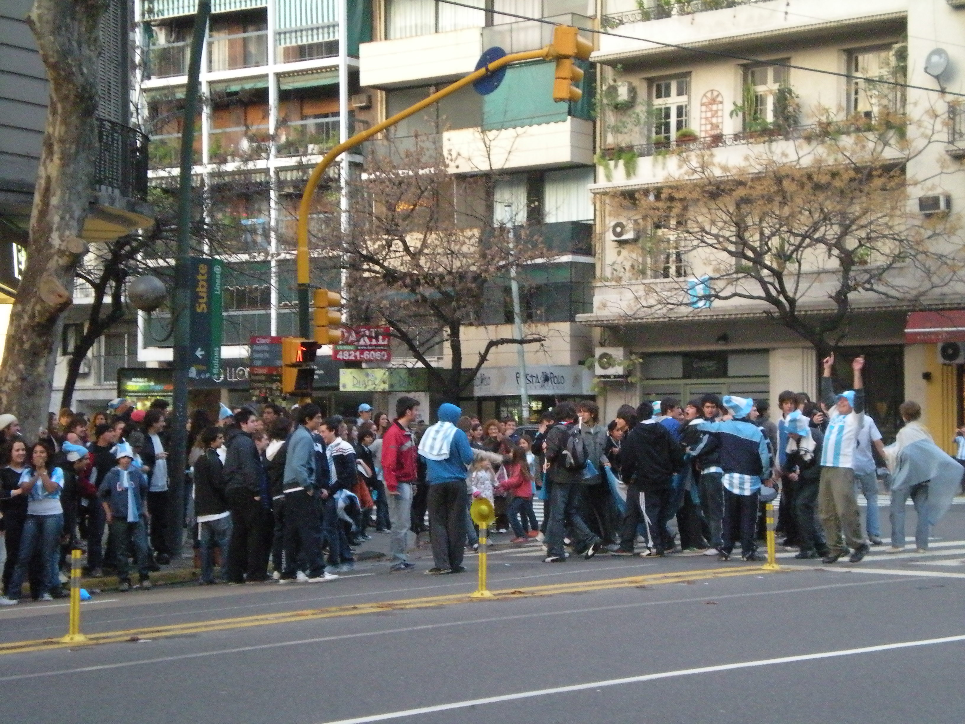 Argentina’s first World Cup match. Under grey skies, Paul, Jesus, Drew, and I dragged ourselves out of bed to get down to the Plaza San Martin by 11 to watch the match on the big screen they set up. We were running a little bit behind schedule, and while Jesus and Drew were in line at a cafe on a main street outside our apartment to get coffee, all of a sudden the whole block exploded, horns honking and screams of GOOOOOOOOOOOOOOOOOOOOOOOOOOOOOOOOOOOOOOOOOOOOAL! while confetti came streaming down from the surrounding apartments. Argentina scored in the 6th minute. And we missed it.